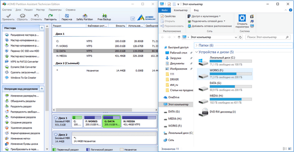 Как объединить разделы диска в Aomei Partition Assistant Standard