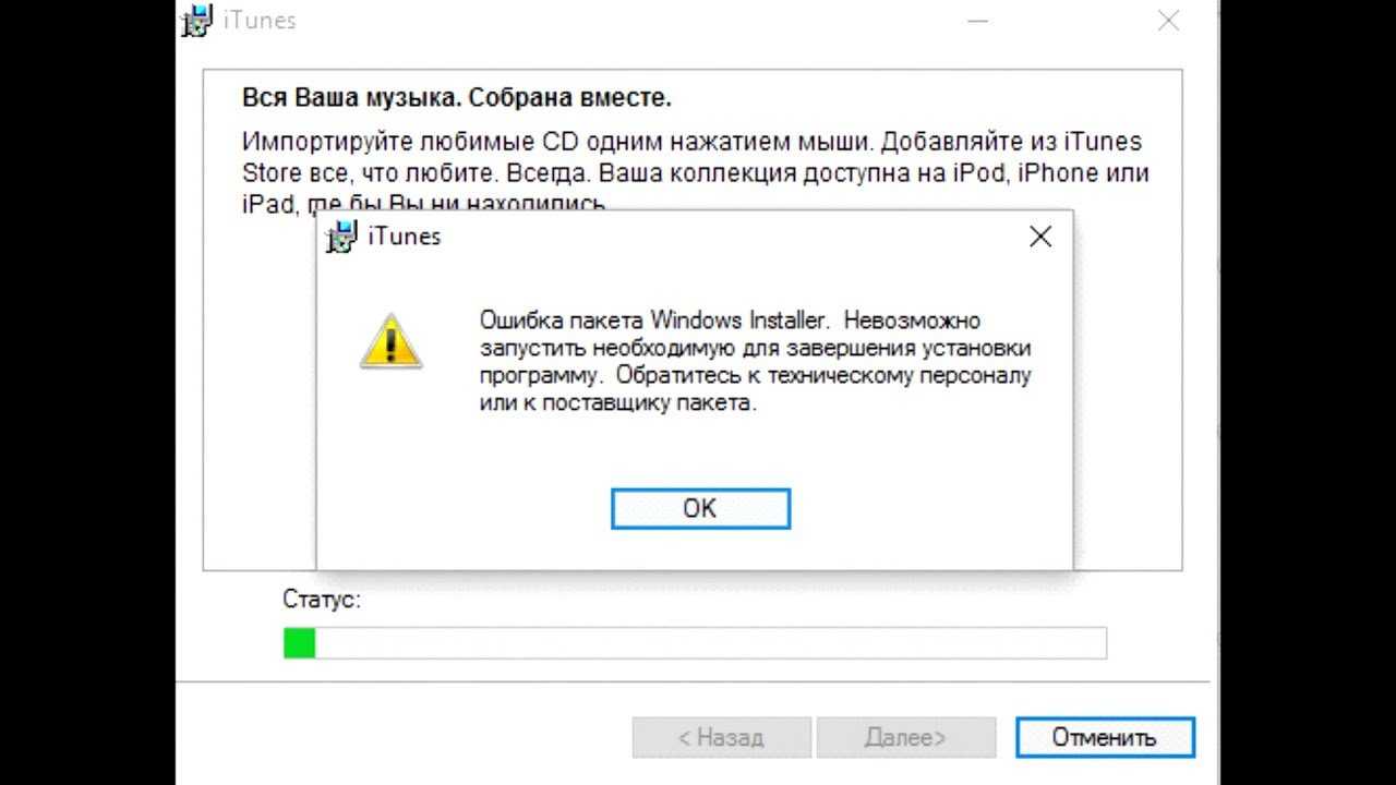 При установке iTunes ошибка пакета Windows Installer. Что делать?