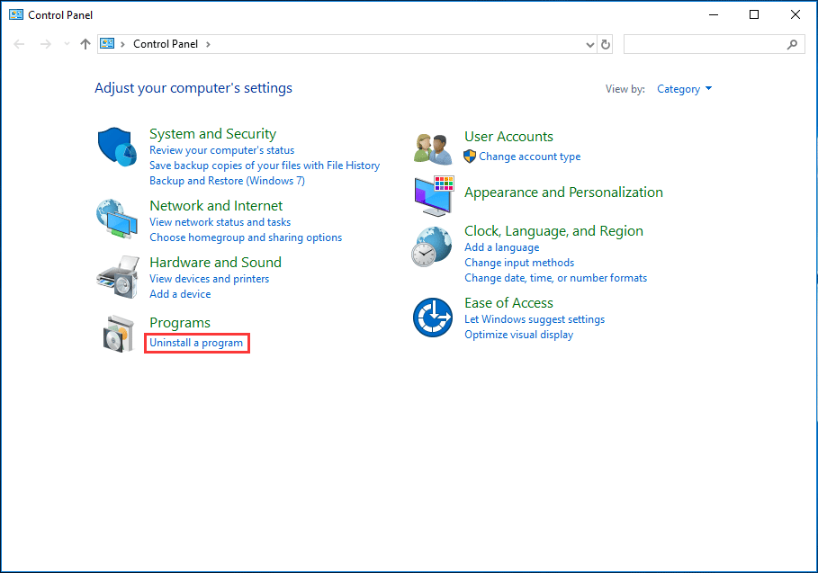 2. В интерфейсе панели управления просмотрите элементы по категориям, а затем выберите Удалить программу .