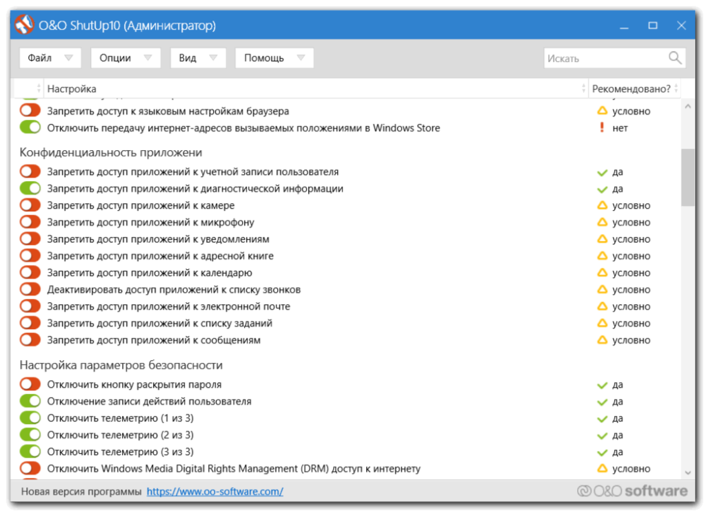 Приложение содержит широкий перечень возможностей, позволяющих деактивировать сервисы Windows 10.