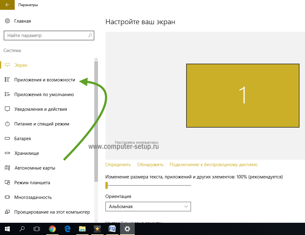 - Пройдите путь: «Пуск» — «Параметры» — «Приложения» — «Приложения и возможности».