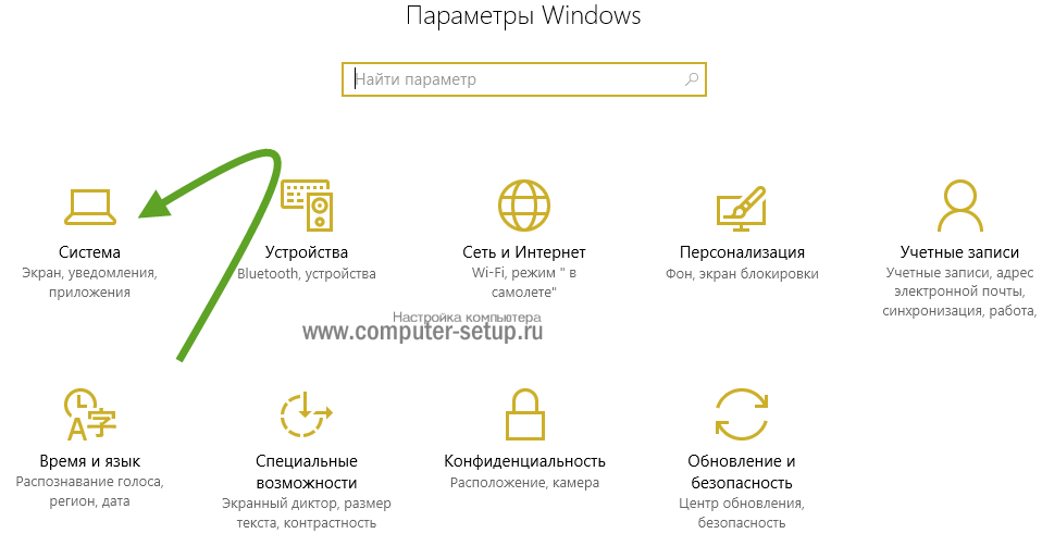 2Далее требуется перейти в раздел под названием Система: кликаем левой кнопкой мыши по нему.