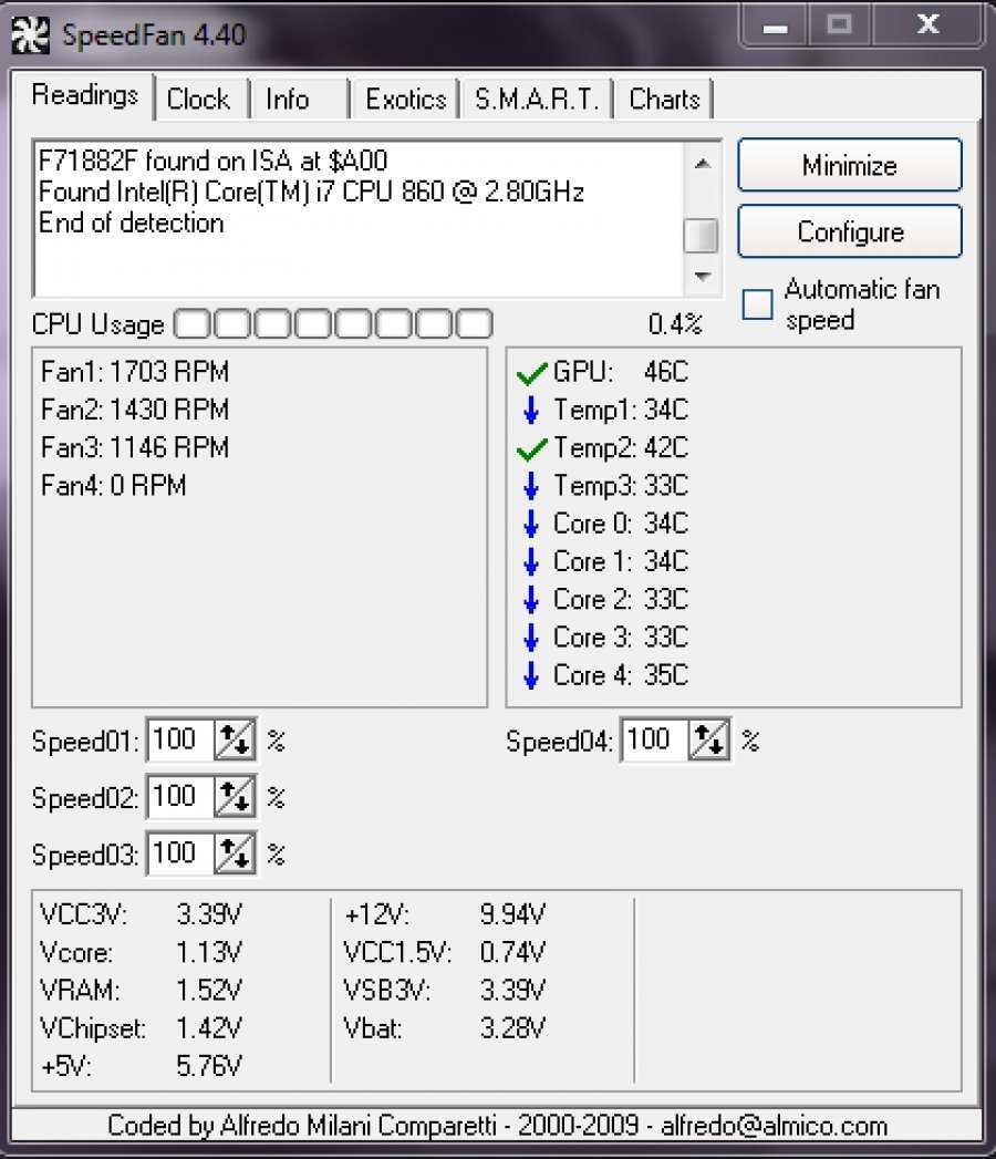 Как управлять скоростью кулера с утилитой SpeedFan