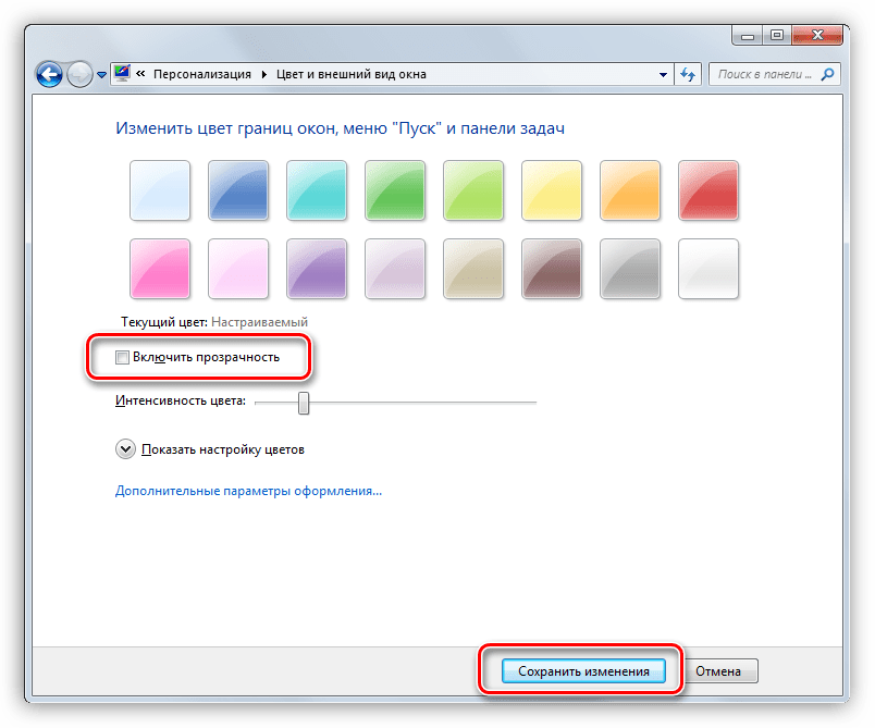 Если «тормоза» остались, то необходимо отключить и другие визуальные эффекты. При этом можно будет снова включить прозрачность, сохранив внешний вид окон.