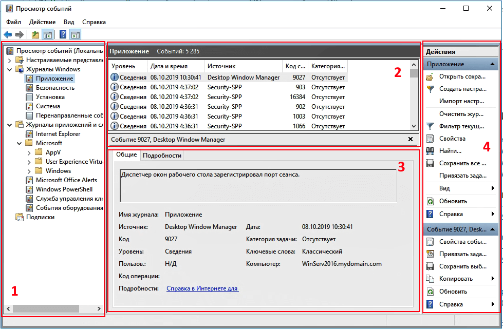 Запуск и обзор утилиты Просмотр событий
