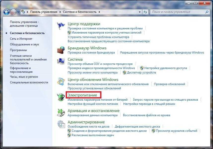 Попасть в необходимый пункт параметров через «Панель управления», которая располагается в пусковом меню. Далее, среди перечня всех разделов выбираем «Электропитания» и выполняем инструкцию второго раздела нашей статьи.