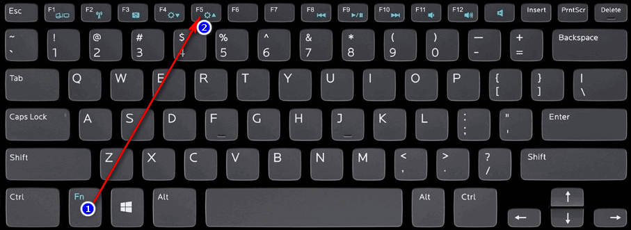 Пример регулировки подсветки ноутбука с помощью клавиши Fn