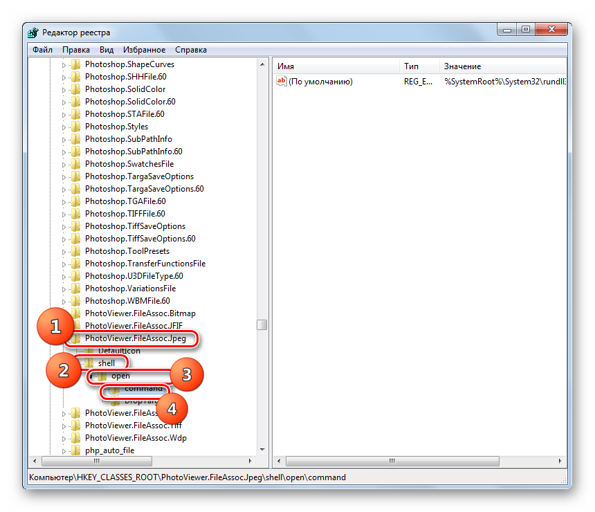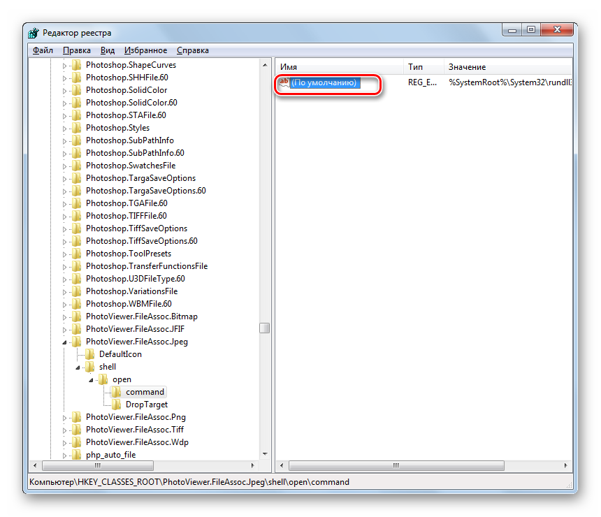 Затем закройте окно «Редактора» и перезагрузите систему. После перезапуска изображения с указанными выше расширениями будут открываться через стандартный просмотрщик фотографий при помощи второй версии библиотеки shimgvw.dll. Это должно решить проблему с работоспособностью данной программы на Windows 7 64-битной версии.
