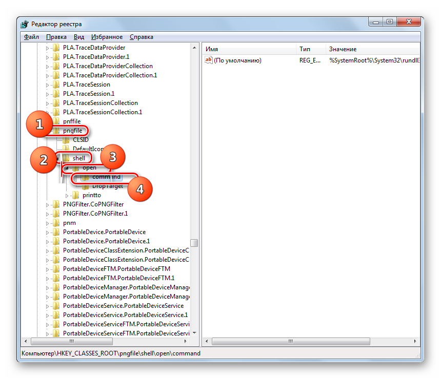 Далее следует проделать аналогичную процедуру для картинок с расширением PNG. В директории «HKEY_CLASSES_ROOT» перейдите по разделам:
