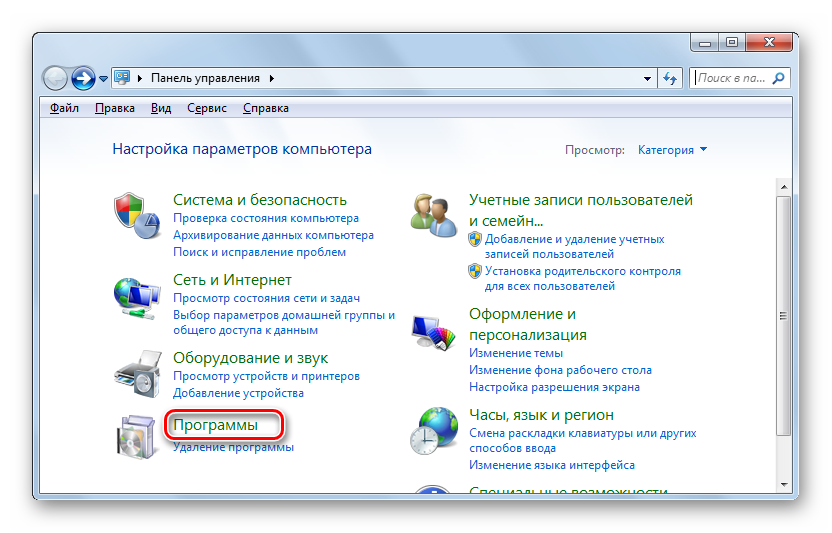 Далее откройте раздел «Программы».