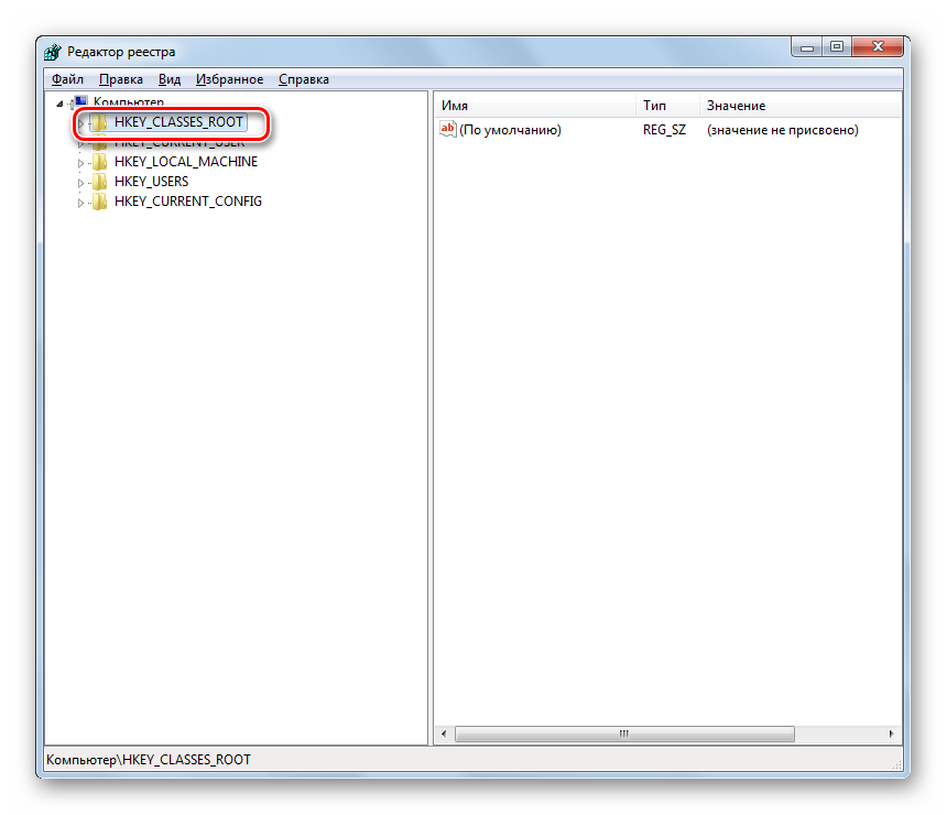 В отобразившемся окне откройте ветку «HKEY_CLASSES_ROOT».