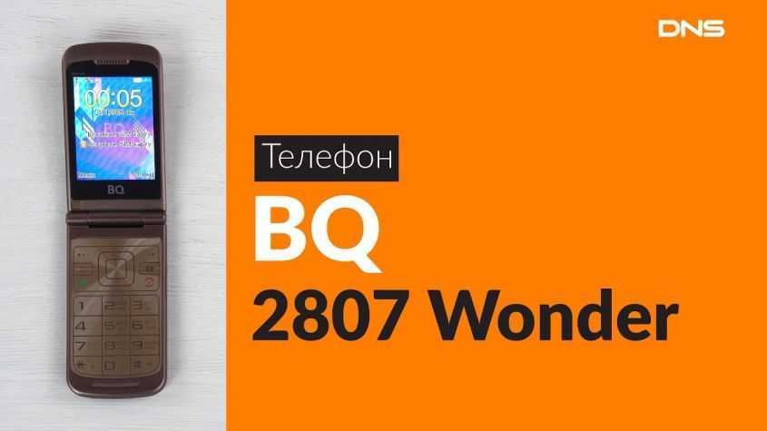 Данный аппарат имеет большой 2,8-дюймовый дисплей, он получил неплохое разрешение в 320×240 пикселей. Кроме того, в нём предусмотрен дополнительный экран на 1,77 дюйма. Устройство весит всего 99 грамм, представлены различные цветовые решения, каждый подберёт устройство под свой вкус. BQ 2807 не поддерживает выход в интернет и работает на следующих стандартах связи: GSM 900/1800. Из интерфейсов доступен Bluetooth. Встроенную память на 64 Мб можно расширить картой объёмом до 8 Гб. Одного заряда батареи достаточно на 3-4 дня использования.