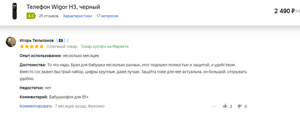 - удобный телефон;