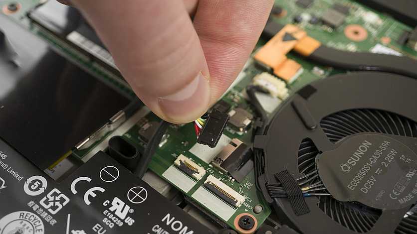 Итак, теория и поход в магазин позади — пора приступать к апгрейду. Начать стоит с очевидного — ноутбук необходимо выключить и отключить от сети питания. Простое, казалось бы, правило: однако народные умельцы, спалившие своё устройство в попытках произвести «горячую замену», встречаются в практике сервисных центров и по сей день. По той же причине требуется отсоединить аккумулятор. В большинстве случаев проблем эта процедура не вызовет, но если попалась модель, аккумулятор которой расположен внутри корпуса и соединён с материнской платой при помощи коннектора, без полного вскрытия не обойтись. Искомый кабель питания нужно аккуратно отсоединить и проследить, чтобы он не касался других комплектующих. Или, всё же, обратиться за помощью в сервисный центр. То же касается и немногочисленных моделей, батарея которых к плате припаяна. Тут уж проще расписаться в собственном невезении и поручить работу специалисту: ремонт цепи питания — дорогое удовольствие.