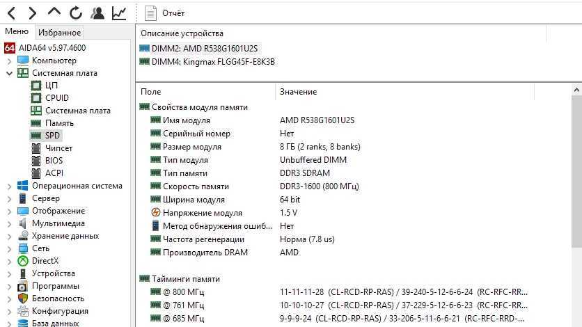 После запуска AIDA64 — перейдите в раздел “Системная плата/Чипсет” и вы увидите две заветные строки: