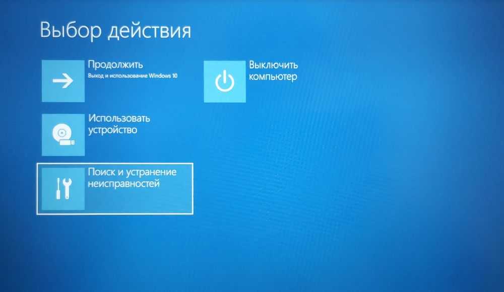 - Спустя несколько секунд, перед вами будет экран голубого цвета с несколькими плитками, выберите плитку «Диагностика\Поиск и устранение неисправностей»;