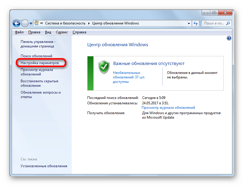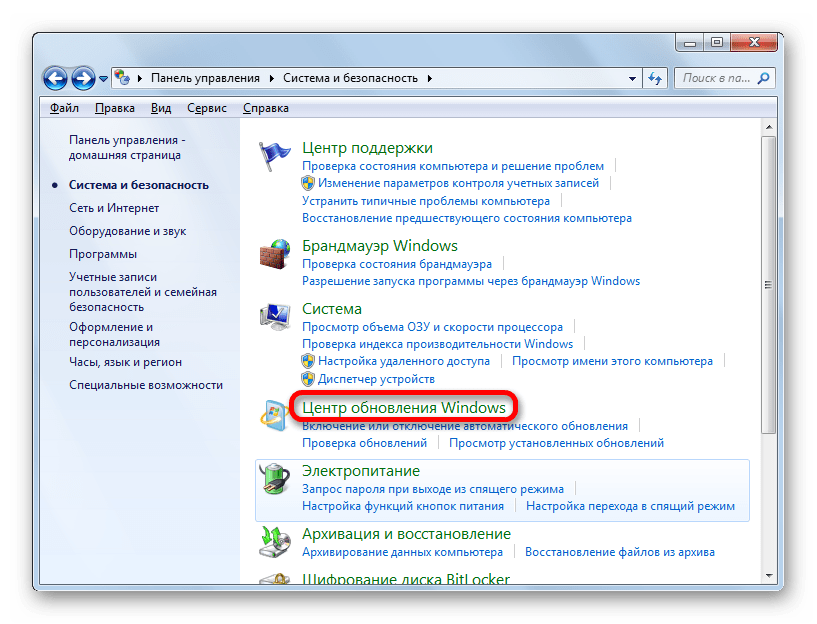 Наиболее известный вариант выполнить поставленную задачу в Windows 7 – это произвести ряд манипуляций в Центре управления обновлениями, путем перехода туда через Панель управления.