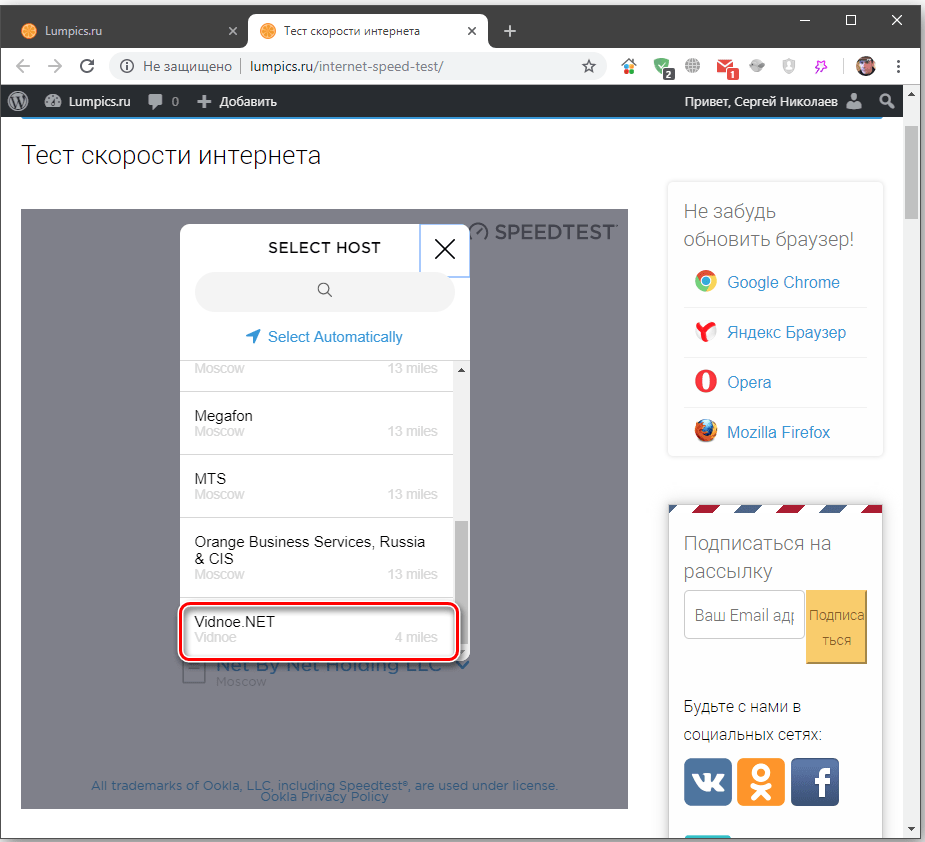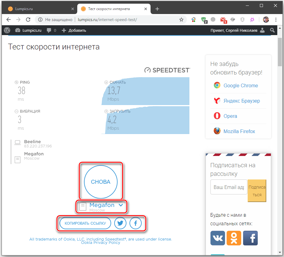Тест скорости на speedtest.net
