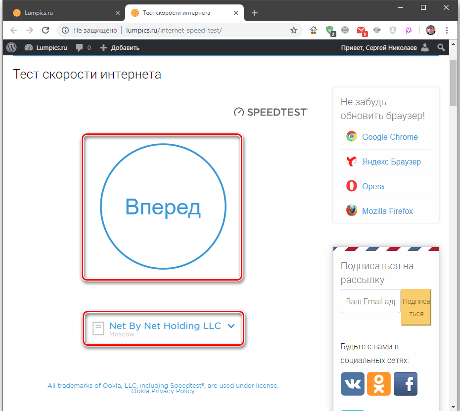 Способ 1: Тест скорости на Lumpics.ru