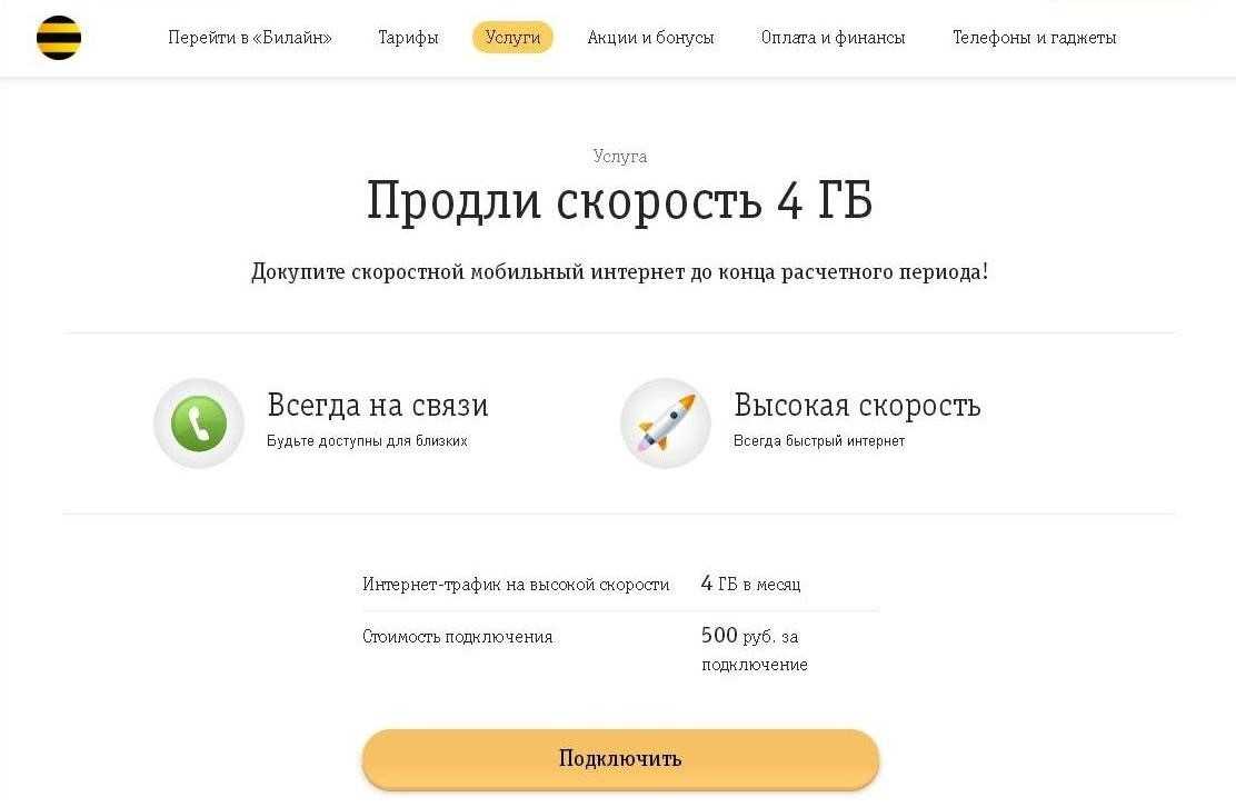 Если вас интересуют другие возможности усовершенствования своего интернета, изучите такие предложения от Beeline, как «Продли скорость» и «Интернет на день».