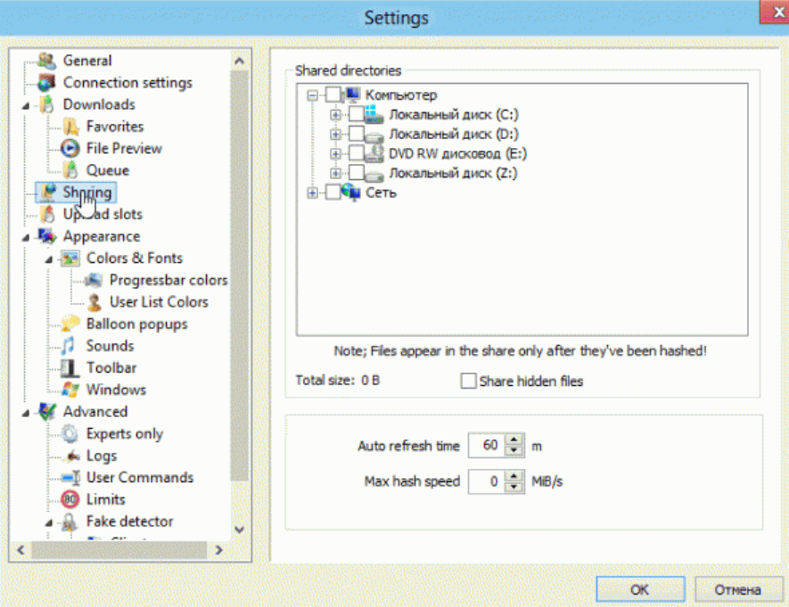 А в разделе Sharing следует указать папки, файлы в которой вы разрешаете скачивать другим пользователям. Именно в нее потребуется скопировать или переместить именно тот большой файл.