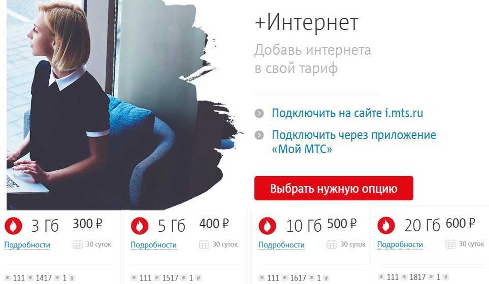 Если у пользователя нет трафика, он сможет взять дополнительный ГБ на МТС (или больший объем) с услугой «Турбо-кнопка». Если гигабайт не хватает постоянно, клиенту рекомендуется воспользоваться опцией «Больше Интернета» и подключить дополнительный Интернет, выбрав необходимое количество ГБ.