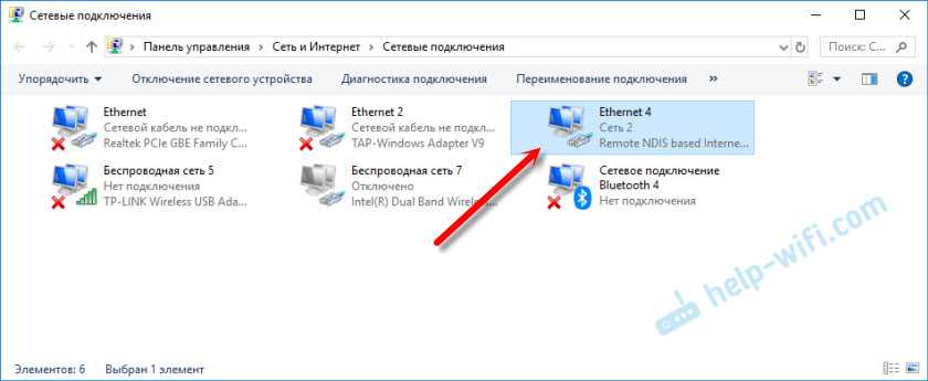А если открыть окно «Сетевые адаптеры», то там можно увидеть новое «Ethernet» подключение.
