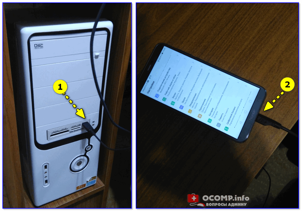 Подключение телефона к USB порту ПК