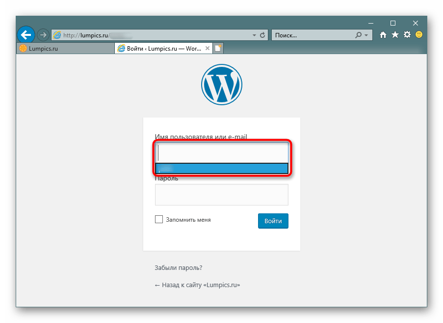 При этом удаление файлов cookie влияет только на то, что после их очистки сотрется информация о входе на сайт. То есть вас «выкинет» оттуда и понадобится снова зайти туда, открыв страницу авторизации и нажав левой кнопкой мыши по пункту «Имя пользователя» или «Логин». Появится всплывающее окошко с логином, пароль для которого был сохранен. Нажмите на него левым кликом мышки.