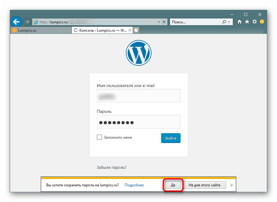 , ваш браузер спросит об сохранении вашего пароля. Будет предложено два варианта: «да» и «нет». Чтобы сохранить пароль