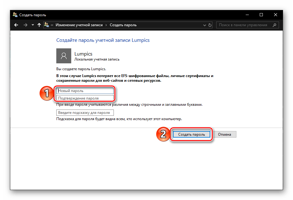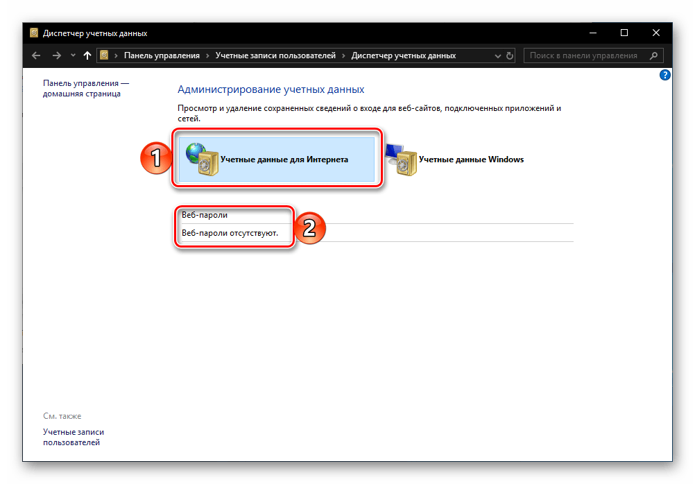 Как мы уже сказали в самом начале данной статьи, просмотр сохраненных паролей в Интернет Эксплорере возможен исключительно из-под учетной записи Администратора, которая, к тому же, должна быть защищена паролем. Если таковой не установлен, в «Диспетчере учетных данных» вы либо вообще не увидите раздела «Учетные данные для Интернета», либо не увидите только сохраненные в нем сведения. Решений в данном случае два – установка пароля на локальную учетную запись или вход в Windows с помощью учетной записи Microsoft, которая по умолчанию уже защищена паролем (или пин-кодом) и наделена достаточными полномочиями.
