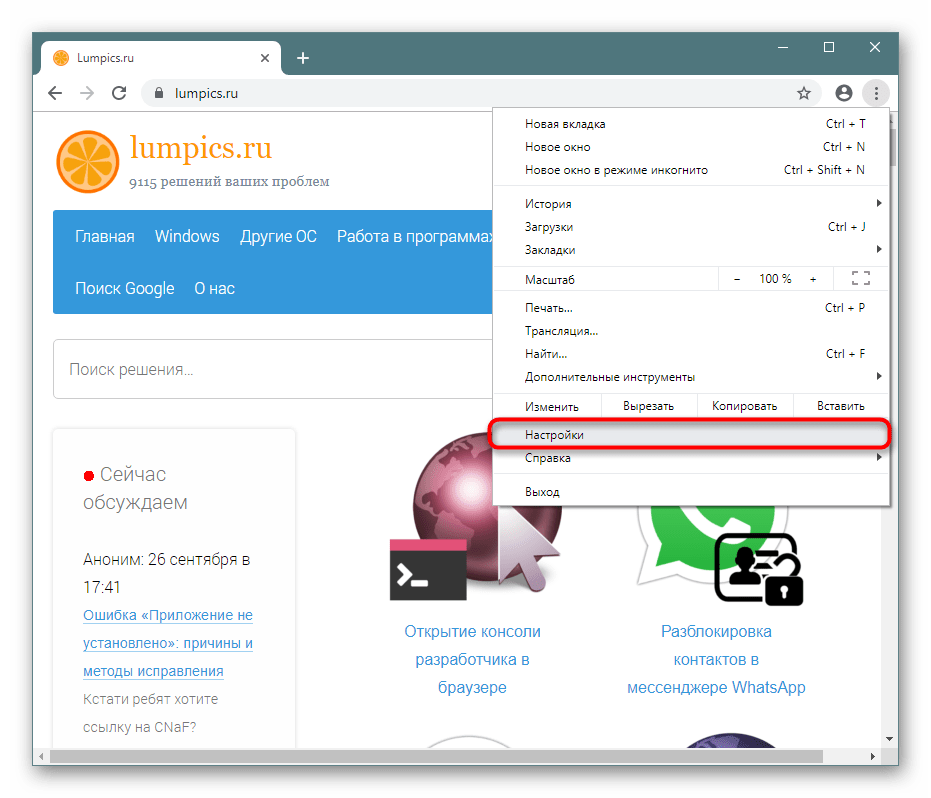 Для этого щелкните в верхнем правом углу по кнопке меню и в отобразившемся списке выберите пункт «Настройки».