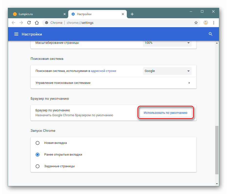 Для того, чтобы сделать Google Chrome браузером по умолчанию нужно выполнить следующие действия: