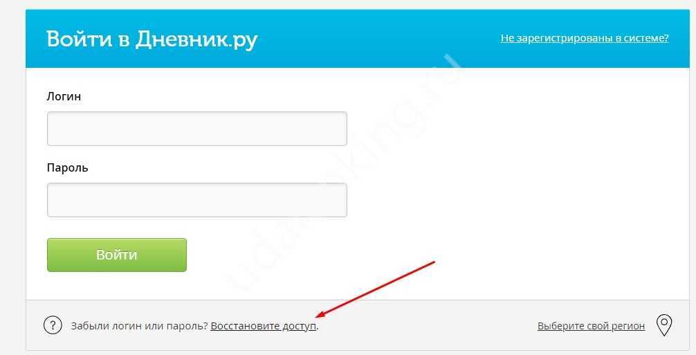 - Под полями для ввода логина/пароля есть кнопка «Восстановить доступ»;