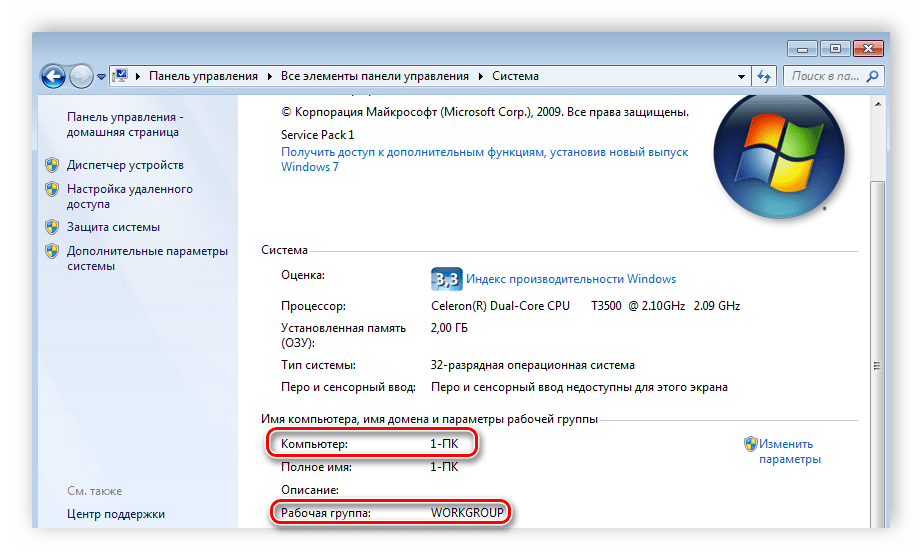 1. Настройка имени компьютера и рабочей группы (аналогично, см. выше).