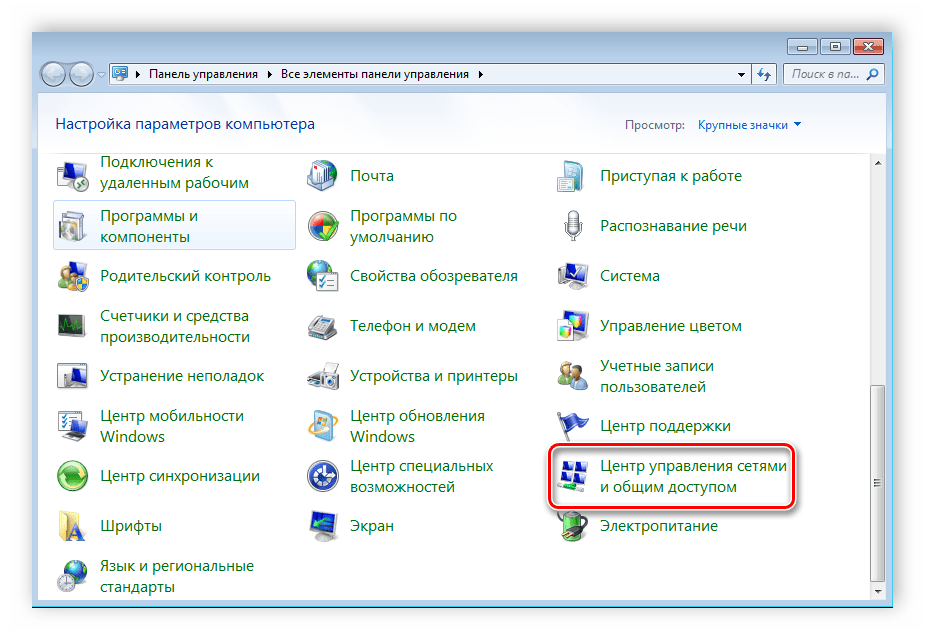 Зайдите в «Центр управления сетями и общим доступом».
