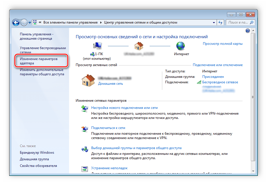 Выберите пункт «Изменение параметров адаптера».