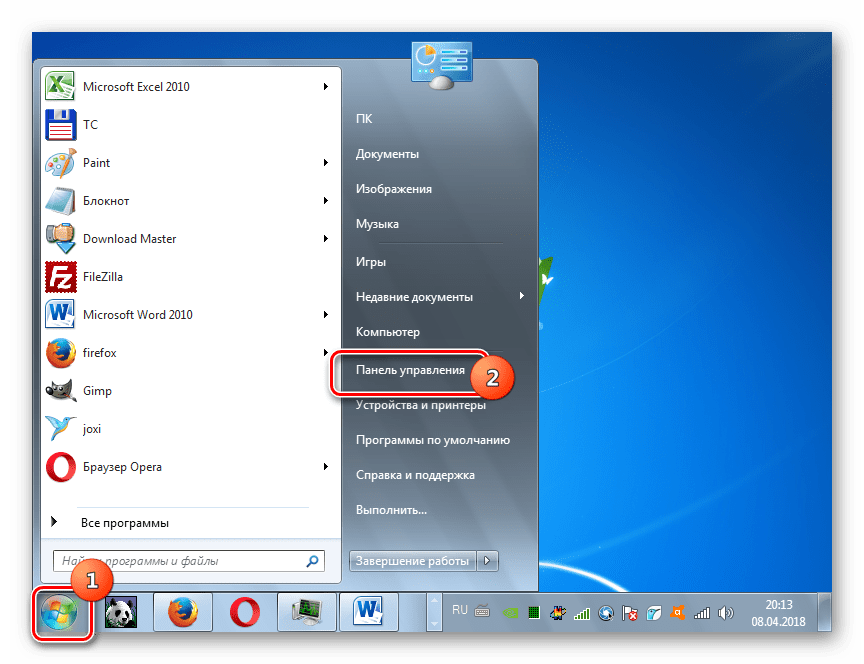 - Перейти в «Пуск» и выбрать «Панель управления».
