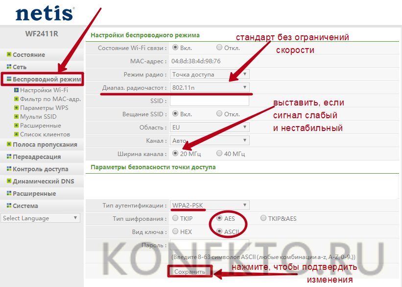Параметры точки доступа Wi-Fi влияют на то, какой будет скорость Интернета. Чтобы роутер функционировал оптимально, необходимо изменить его настройки следующим образом: