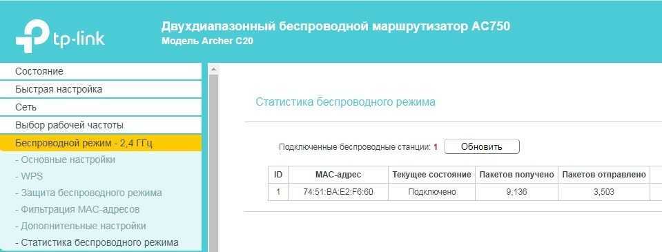 В том же разделе «Беспроводного режима» проверьте, чтобы по Wi-Fi к вам не были подключены соседи. Для этого посмотрите статистику беспроводных подключений.