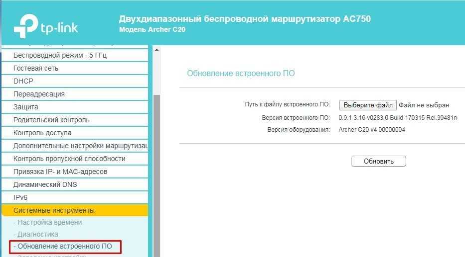 Следующее, что нужно сделать – обновить систему на интернет-центре. Для этого находим нужный раздел и производим обновление. В некоторых аппаратах достаточно будет просто нажать на кнопку обновления. А на некоторых, как у меня, нужно будет скачать файл обновления с официального сайта производителя. Далее выбираем файл и нажимаем кнопку «Обновить».