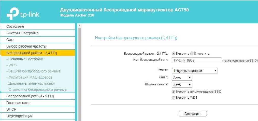 Покажу на примере роутера TP-Link, но на деле все делается у всех одинаково. Самое главное найти раздел беспроводной сети, который может называться как: «Wi-Fi», «Беспроводной режим», «2.4 ГГц».