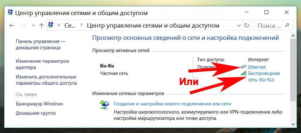 Стоит обратить внимание на то, что если устройство подключено по беспроводной сети, то вместо Ethernet выбрать Беспроводная сеть.