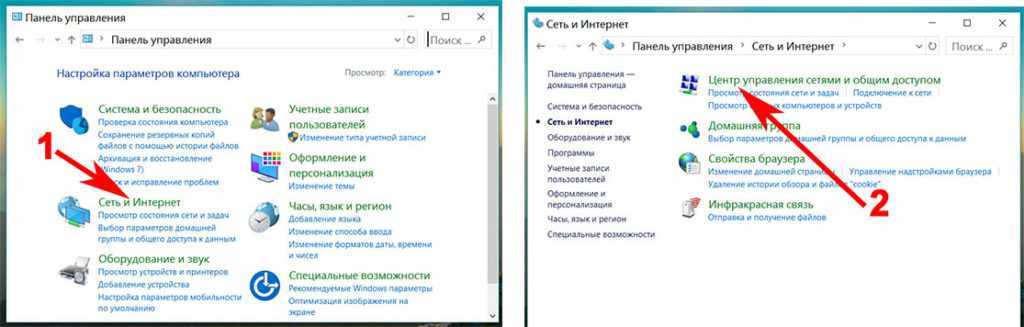 - Затем выбрать опцию Сеть и интернет и выбрать пункт Центр управления сетями и общим доступом.