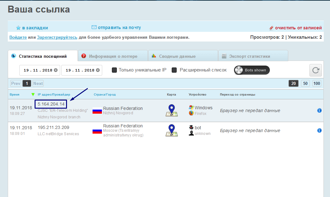 Вас перекидывает на вот такую страничку, на вкладке «Информация о логгере» в верхней строке копируем ссылку и отсылаем её другому человеку.
