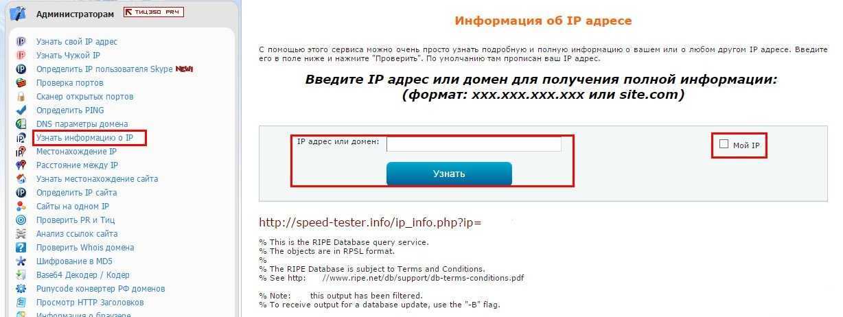 - проверка основной информации по введенному IP-адресу;