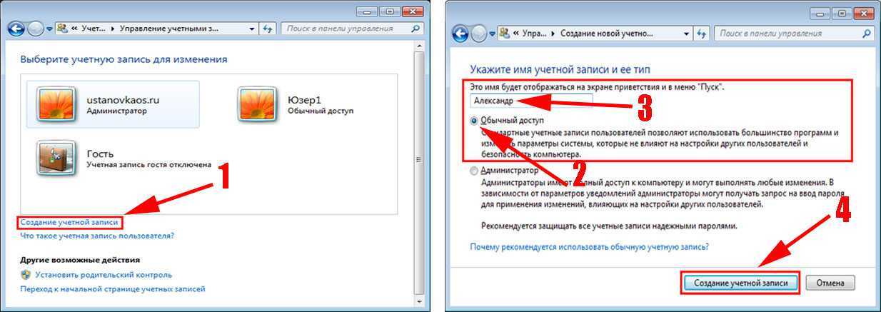 В новом окне кликните «Создать учетную запись». Далее поставьте точку «Обычный доступ», впишите имя будущей учетной записи и нажмите кнопку «Создать учетную запись».
