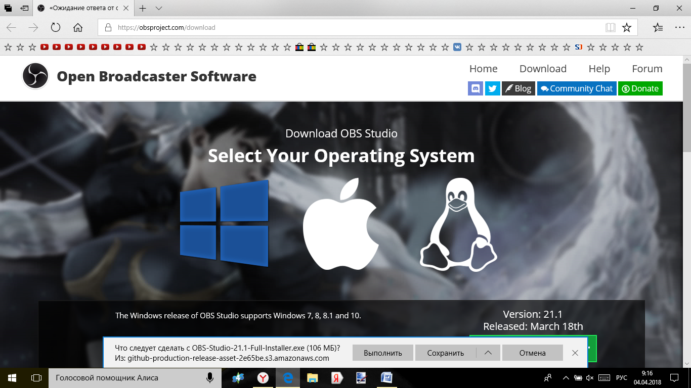 После успешно модерации можно приступить к настройке программы, через которую мы будет транслировать наш стрим. Вы можете выбрать любую программу, но для начала лучше попробуйте OBS. Она простая, бесплатная и очень популярная среди стримеров, а потом уже можете пользоваться любой удобной. Скачать её можно тут, прямо с официального сайта: https://obsproject.com/