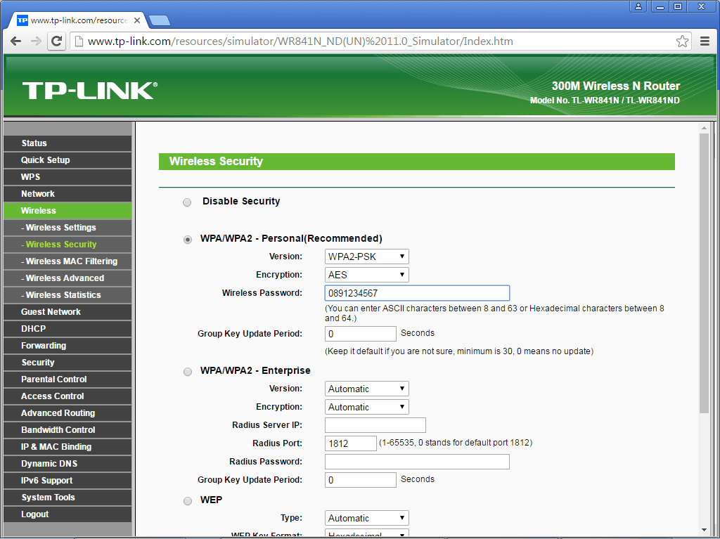 Шаг.6 Подбираемся к завершению. Откройте подраздел Wireless Security, означающий безопасность беспроводной сети. Выберите режим WPA / WPA2 — Personal. Во всплывающем меню Version выберите поддержку стандарта WPA2-PSK. В меню Encryption выберите стандарт шифрования AES. В меню Wireless Password придумайте безопасный пароль для вашей беспроводной сети. Сохраните все изменения.