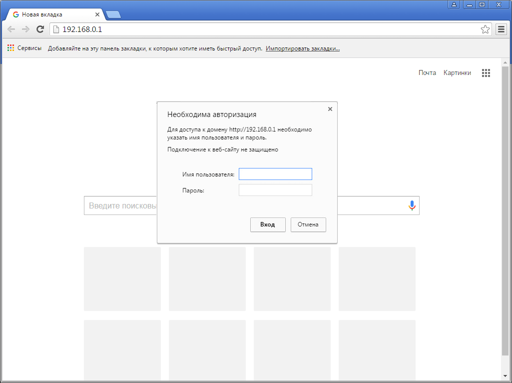- 1. Открыть браузер и ввести в адресную строку: 192.168.1.1 ;